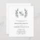 Budget Olive Branches Symbol of Love QR Code RSVP Monogram Wedding Invitation... The front of our affordable monogram wedding invitation features the bride's and groom's initials overlaid on a pastel ampersand bordered by elegant watercolor olive branches. Just below is your personalised invitation text in charcoal serif and sans serif typography on a crisp white background. The back of the invitation displays your wedding website QR code as well as the website's URL allowing your invitees to easily RSVP online and view all of the details normally sent in a wedding packet. The example QR code and all example text (aside from the calligraphy elements) can be easily revised with your own information on the personalisation template.