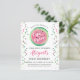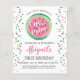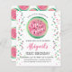 This cute first birthday invitation features a cross-section of a watermelon in pink and green watercolor, with the words "One in a Melon!" in white script. Personalise it with the birthday girl's name in pink script and the remaining text in off-black. A border of pink and green confetti decorates the left and right edges, and the reverse side features a matching pink and green watercolor melon pattern. Ideal for a little girl's summer birthday party!