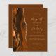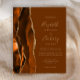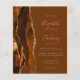The left-hand edge of this elegant modern wedding invitation features a burnt orange and brown watercolor agate border trimmed with faux gold glitter. The customisable text combines gold coloured handwriting, copperplate and italic fonts on a nutmeg brown background. The reverse side is solid nutmeg brown. NOTE: Envelopes are not automatically included with these budget invitations, so please remember to choose the "white envelopes" option!