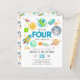 Modern Outer Space Galaxy Moon Rocket Spaceship Alien Kid Reach FOUR the Stars 4th Birthday Invitation
