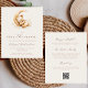 This cute boho baby shower invitation features a sweet watercolor teddy bear asleep on a crescent moon above the words "over the moon" in brown handwriting script. Personalise the text with the name of the mum-to-be in script and the details in sans serif font on a beige background. The reverse side provides space for diaper raffle, books for baby, and registry details, along with a convenient QR code guests can scan to visit the registry. Ideal for a gender-neutral baby shower.