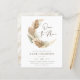 watercolor illustration of a crescent moon adorned with a boho arrangement of dried palm leaves, pampas grass, fern, and lush greenery. "Over the Moon" is written in a modern script lettering font inside the curve of the moon. The event details appear below in classic serif typography, with the mum's name in bold brown capital letters. The cards reverse to a soft palm leaf pattern. This modern design is perfect for bohemian, tropical, or desert-themed baby showers. It is suitable for all seasons and great for gender-neutral or gender-reveal events. Contact us for any custom requests or assistance. Personalise using Zazzle's intuitive design tool, and edit the wording, fonts, colours, and placement to create your own unique baby shower invitations. As part of the budget selection on Zazzle, this sheet isn't a standard invite size or paper quality. If you want this design on an invitation card you can find it in our store or use the Zazzle Make Machine to transfer it onto the product of your choice. Please note that modifications to existing orders are not possible, so don't hesitate to reach out before placing your order. The digital and a couple's shower version of this design is available in the collection link on this page.