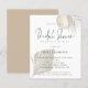 Budget Pampas Brunch Bubbly Bridal Shower Invite. A budget friendly SMALLER 4.5” x 5.6” alternative. Available in a SEMI GLOSS 110 lb CARD STOCK or a SATIN FINISH 80 lb THINNER PAPER STOCK. Envelopes are an optional extra. A modern bohemian design with rustic grasses decorating the top right corner in shades of beige and brown and fan pampas leaves from the bottom left tinted into the background with the typography partially overlaid on top. Stylish set typography is for the main heading Bridal Shower complementing the rest of the text which you can easily personalise.