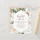 Budget Chic and Modern Pampas Grass and Eucalyptus Gold Floral Flowers Boho Bohemian Botanical Greenery Watercolor Frame Baby Shower Autumn, Winter, Spring or Summer Wedding Invitations - includes beautiful and elegant script typography for the special Mother to Be party or celebration.