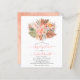 BUDGET Tropical watercolor dried flowers, palm leaves and pampas grass coral wedding invitation. It features a bouquet of dried palm leaves, protea and rose flowers and pampas grass. The back includes a watercolor background in coral and peach.