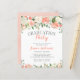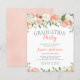 Beautiful floral budget graduation party invitations. Design features hand painted watercolor roses, peonies and hydrangeas in shades or blush pink, peach, coral and cream.