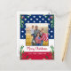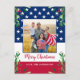Send Merry Christmas greetings to friends and family with this unique USA American Flag Christmas Card - USA American flag design modern red white blue design with holly and berries. Personalise with your favourite photo and family name. This patriotic Christmas card is perfect for military families, veterans, patriotic family christmas cards. COPYRIGHT © 2022 Judy Burrows, Black Dog Art - All Rights Reserved. Budget Patriotic Christmas Military Photo USA Flag Postcard