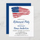 USA American Flag Military Retirement Party Invitations. This modern and trendy red white blue, stars and stripes, American Flag party invitations are perfect for a military retirement party, soldiers going away party, military deployments send off, military welcome home celebration, and military graduation events, as well as police officer retirement, state police department retirement party, law enforcement, firefighters, fire department and retired veterans. Personalize this american flag invitation with your soldiers, police or veteran event, name, and party details.