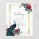 Beautiful Peacock with Teal and blue, burgundy flowers, sage green leaves feature on this fall, autumn, winter wedding items. Part of a larger collection that includes budget wedding invitations, save the dates, RSVPs, thank you photo cards, bridal and wedding party gifts, and more. For a detailed FREE winter wedding planning, guide visit weddingdesignchic.com.