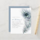 A value for money BUDGET alternative on a smaller size 4.5 x 5.6” semi-gloss 110lbs weight, which is of similar thickness to a postcard (however is not suitable to use as a postcard.). PLEASE NOTE there is ONE per sheet. Peacock Feather Script Wedding Invitation. A beautiful peacock feather in shades of blue and teal runs along the right hand side and the words are aligned to the left. Easily personaslie the text. A coordinating dusty blue is on the back.