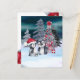 BUDGET Penguin Christmas Tree Scene - a very cute Holiday Card from Ricaso featuring two little penguins in front of a Christmas tree adorned with red baubles and a poinsettia flower in a forest with snow