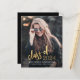 Modern graduation announcement featuring a custom vertical photo. The words "class of" appear in gold faux foil script, followed by the editable class year in gold-coloured open serif font. Add the graduate's name and school below in white sans serif font. Easily replace the sample image with your own graduate's photo. A black gradient screen helps ensure the text pops. The reverse is solid black. Ideal for high school or college graduation.