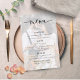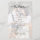 Budget Photo Transparent Overlay Background Script Wedding Menu. A LARGER size 5.5” x 8.5” at a budget price, An informal set typography in black for the main heading Menu complementing the rest of the text which you can easily personalize. Replace the sample photo which is tinted in the background with your own favorite.