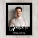 Budget-friendly modern black graduation announcement featuring your photo and "Graduate" in a stylish bold white script. Add the grad's name, school and class year in simple white typography.