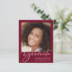 Modern budget-friendly burgundy red graduation announcement featuring "Graduate" in an elegant white script and her photo and her name, school and class year in simple white typography.