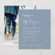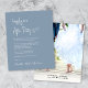 Chic budget-friendly dusty blue elopement or private wedding announcement and wedding reception invitation featuring "Happily Ever After Party" in a modern white script, your invitation in classic white serif typography and your names in a signature-like script. The back features your photo, names and wedding and reception dates.
