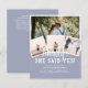 ⭐ Design by LeahG™ Founder of the Low Budget Wedding Network®. Congratulations on your engagement. 📌PIN this design to your wedding moodboard on Pinterest and enjoy your wedding planning journey. 🥰 Your friends and family will love this modern trendy 4 x photo collage engagement announcement or party invitation. Double-sided to ensure you can add all your event details. Modern overlay text that reads " Finally, she said yes!" You can EDIT THIS to read anything else, such as "We are doing it'", "we are getting hitched", "we are saying I do" and more! Be creative. 🖊️ Lots of colour backgrounds to choose from and low budget options (from 0.30) view the attached collection to see them all. ⭐ NOTE that paper weight and size reflects in the prices. For regular cardstock (5x7) use the TRANSFER option on your product page. Most of my designs include template fields on both sides (where allowed by the product) to ensure you get the most value and practical benefit. In the case of invitations, this enables you to include rsvp, gift registry, wedding website, reception details, and, in the most recent designs, a qr scanning code. For other items, you can add text or images as required for your event. Enjoy your wedding planning journey. ©Design and Text LeahG™