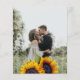 Elegant modern chic summer or fall wedding stylish BUDGET affordable invitation PAPER FLYER template with faux gold calligraphy script and photo overlay featuring a beautiful sunflowers bouquet. ++++++++++++++++++ Personalize it with your details and 2 photos. +++++++++++++ The invitation is suitable for elegant summer or autumn fall rustic country outdoor backyard or garden weddings. ++++++++++++++++++++++++++++++ PLEASE READ THIS BEFORE PURCHASING! This is a budget affordable card printed on a FLYER. ++++ Please note that BUDGET PAPER IS THIN - You can upgrade to have this card printed on cardstock ++++ ENVELOPES NOT INCLUDED. +++ Double-check all the information and spelling of your text because you will receive exactly what you see - no one else will check anything before printing. ++++ This card is designed for size 4.5" x 5.6". In the case you choose another size of the card and text goes outside page, everything needs to be fixed before adding the product to cart. Please ask Live Design Service for help.