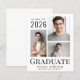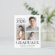 Modern budget-friendly graduation announcement featuring 3 photos, "Graduate" in large elegant typography and the grad's name, class year and school or university in simple typography.