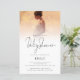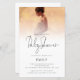 PLEASE NOTE there is ONE invite per sheet. A LARGER size 5.5” x 8.5” at a budget price, on a SEMI GLOSS 110 lb CARD STOCK, great for invitations, at roughly the same thickness as a postcard, or an elegant 110 lb LINEN stock – for a luxury, slightly thinner feel at great value. PLEASE NOTE THE OPTIONAL ENVELOPES ARE A LITTLE BIGGER IN SIZE AT 6.75” x 9” approx. This budget size alternative is also available in other paper choices. The FELT 100 lbs paper is buff coloured, NOT white, so adds a rustic touch. The MATTE 80lbs paper stock is bright white, for crisp printing, great for your menus and programs, whilst the SATIN 80lbs paper is thin and light, ideal for enclosures. Budget Photo Overlay Script Baby Shower Invitation. An informal set typography in black for the main heading Baby Shower complementing the rest of the text which you can easily personalise. Replace the sample photo with your own favourite of the mummy to be.