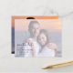 Beautiful design at a budget price! This pretty script with photo overlay wedding save the date is both modern and stylish. White overlay on the photo with your details on the front and full colour photo on the back.