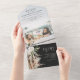 Budget modern black rustic pampas eucalyptus photo wedding all in one invite, reply card with space for website information.