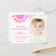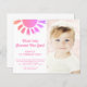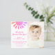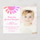 Invite family and friends to your first birthday party with this cute 1st Birthday Budget Invitation. It is decorated with a pink watercolor sun and says "First trip Around The Sun!"