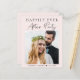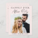 Budget pastel pink elopement or private wedding announcement and reception invitation featuring your photo, "Happily Ever After Party" in simple typography and a chic modern script and your names and wedding date. On the reverse, personalise your announcement and reception details, input your wedding website address to create a QR code for your guests to scan for more information and to RSVP online, and add your names in a signature-like script.
