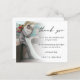 Budget Photo QR Code to Wedding Pictures Thank You. A budget price SMALLER 4.5” x 5.6” alternative. Available in a SEMI GLOSS 110 lb CARD STOCK which is the default option (recommended for invitations), OR a SATIN FINISH 80 lb THINNER PAPER STOCK (ideal for enclosures). Envelopes are an optional extra and are slightly larger than the card size. Simply replace the sample picture with your own to this elegant Wedding Thank You and on the back replace the sample QR code with your own so your gguests can view your online wedding photo gallery. Thank you is in a set handwriting style and the rest of the text you can easily personalise. A graduated tint opacity layer is on top of your photo so your text can be seen as it is partially overlaid on top.