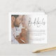 Budget Photo QR Code Wedding Details Enclosure. A budget price SMALLER 4.5” x 5.6” alternative. Available in a SEMI-GLOSS 110 lb CARD STOCK which is the default option (thicker for invitations), OR a SATIN FINISH 80 lb THINNER PAPER STOCK (ideal for enclosures). Add your QR code to your wedding website on the back makes this a convenient option for your guests to see all the details. You can create QR codes for free online. Simply search “QR code creator” and lots of options come up to create for free. A minimalist fun design to let everyone know your happy news. Simply replace the sample photo with your own favourite. A gradient overlay layer is on top of your photo so it fades out as it reaches the centre with the text partially overlaid on top. The Details is in a modern set script and easily personalise the rest of the text.