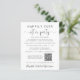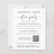 Budget-friendly elopement or private wedding announcement and wedding reception invitation. The front features "Happily Ever After Party" in simple typography and an elegant script with swashes. Customise your announcement and invitation, input your wedding website address to create a QR code that your guests can scan for more information and to RSVP online, and add your names in a signature-like script. The back features your favourite wedding photo, first names and wedding date.