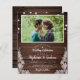Who says that budget-friendly can't be gorgeous? Not us! This design features a realistic wooden background with string lights on the top placed behind a custom photo and beautiful delicate lace in the bottom corners. Customise this design by clicking the "personalise" button and typing into the text boxes. Once you've finished adding your details, be sure to check out the wide range of paper sizes, textures and shapes that Zazzle has to offer.