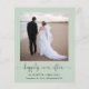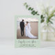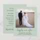 Chic budget-friendly sage green elopement or private wedding announcement and reception invitation. The front features your photograph, "happily ever after" written in a stylish script with swashes and your first names and wedding date and location. On the reverse side, personalise your wedding announcement in more detail, add a reception or party invitation and sign your married names in a signature-like script.