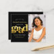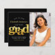 Make sure all your friends and relatives will be able to celebrate your graduate’s milestone graduation! Send out this stunning, simple, modern, personalised photo “Save the Date” budget announcement for an event to remember. Bold, graphic, faux gold foil typography overlays a black background. On the right hand side, add a photo of your choice. Personalise the custom text with your graduate’s name, class year and date. Your custom message and a faux gold foil graduation cap icon adorn the back. Matching invites, thank you cards, cap toppers, napkins, plates and other graduation goodies are also available in this trendy and stylish collection. Guaranteed to add stylish fun to their special occasion!
