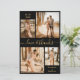 Elegant, modern, minimalist black and gold hand Lettered 4 photo collage personalised wedding thank you personalised affordable low budget THIN card. ***PLEASE NOTE, SCROLL DOWN FOR MORE INFO!*** Stylish wedding thank you card template featuring four (4) photo on the front and one (1) photo on the back side. With the text "Love and thanks" in a cursive hand lettered typography swash-tail font script in gold colour on black background. Little heart shape between the names. Personalise your name and thank you message. *** PLEASE NOTE! *** BUDGET PAPER/FLYER IS PAPER THIN. *** UPGRADE THE PAPER FOR A THICKER PAPER. *** Traditional Cardstock with Envelopes: https://www.zazzle.com/love_and_thanks_script_black_gold_collage_wedding_thank_you_card-256443481225826268 https://www.zazzle.com/love_and_thanks_script_black_gold_collage_wedding_thank_you_card-256283855226677317