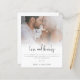 A value for money BUDGET alternative on a smaller size 4.5 x 5.6” semi-gloss 110lbs weight, which is of similar thickness to a postcard (however is not suitable to use as a postcard.). PLEASE NOTE there is ONE per sheet. Budget Photo Script Engagement Love and Thanks. A modern design to say thank you after your engagement party, with informal set script Love and Thanks, beneath your photo at the top and the rest of the text you can easily personalise. Choose a photo of you both and replace the sample photo in the template placeholder with it.