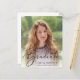 A budget option to announce your graduate's achievements. This elegant graduation announcement features his or her favourite photo with "Graduate" written on top in a stylish script. Add his or her name, school and class year.
