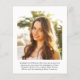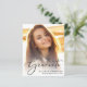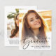 A budget-friendly option to announce your graduate's achievements. This stylish graduation announcement features their favourite photo with "Graduate" overlayed on top in an elegant script. Add their name, school and class year. On the reverse side, add an additional photograph and a personalised message.