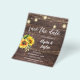 Save money on formal invitations with this smaller invitation that has an option for envelopes. Get your guests ready for the amazing wedding with this Sunflower, Wood, & String Lights invitation.