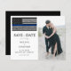 Invite your friends and family to celebrate your special day with these thin blue line police themed wedding save the date cards, accessories and gifts . These budget wedding invitation cards have an envelope option. Customise with your favourite engagement photo, names, and all your wedding info. This law enforcement wedding collection will be a favourite among all police officers, police wife and law enforcement. COPYRIGHT © 2020 Judy Burrows, Black Dog Art - All Rights Reserved. Budget Photo Thin Blue Line Police Wedding Save The Date Postcard
