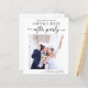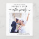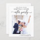 Modern budget-friendly save the date announcement for your post-elopement or private wedding reception that features your photo, "Save The Date For Our Happily Ever After Party" in a mix of simple typography and a trendy script with swashes and your first names, reception date and location. On the reverse side, provide more details and add your names in a signature-like script.