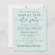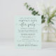 Affordable light mint green save the date announcement for a reception or party to celebrate your elopement or private wedding. The front features "Save the Date For Our Happily Ever After Party" in simple typography and an elegant script with swashes, your customised wedding announcement, party or reception save the date details and your names in a signature-like script. The reverse side features your wedding photo, first names and wedding and reception dates.