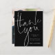 A value for money BUDGET alternative on a smaller size 4.5 x 5.6” semi-gloss 110lbs weight, which is of similar thickness to a postcard (however is not suitable to use as a postcard.). PLEASE NOTE there is ONE invite per sheet. An elegant modern design with set handwriting style typography Thank You stylishly filling the best part of the page. On the back simply replace the sample picture with your own favourite from your day as a keepsake for your guests. Easily personalise the rest of the text with your message and names.