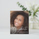 A budget-friendly option to announce your graduate's achievements. This elegant graduation announcement features his or her favourite photo with "Graduate" written on top in a stylish white script. Underneath, add his or her name, school and class year.