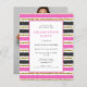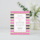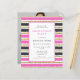 A budget price SMALLER 4.5” x 5.6” alternative. Available in a SEMI-GLOSS 110 lb CARD STOCK which is the default option (thicker for invitations), OR a SATIN FINISH 80 lb THINNER PAPER STOCK (ideal for enclosures). Envelopes are an optional extra and are slightly larger than the card size.. Glam pink and black stripes for this girly design. Easily personalise the text and replace the photo on the back with your own.