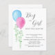 It features pink and blue watercolor balloons with eucalyptus and stylish script typography that says "Boy or Girl."