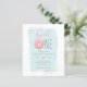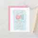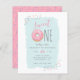 Budget Pink Doughnut Sprinkle Sweet 1st Birthday Invitations. The first birthday is definitely a very special one, so celebrate your little girl's 1st birthday with our unique and fun invitations! Featuring a pink doughnut with colourful sprinkle displaying "sweet ONE" at the top. Your party details are shown in cute and trendy typography against a blue watercolor overlay. Reversing to a bright pink background with sprinkles.