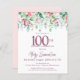 Elegant 100th Birthday Party invitation template features a gold frame and two arrangements of blush pink roses. All of text is editable.