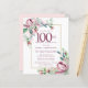 Elegant 100th Birthday Party invitation template features a gold frame and two arrangements of blush pink roses. All of text is editable.