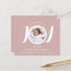 Introduce your beautiful newborn baby girl with this budget birth announcement. The front features the word joy in stylish white script typography on a dusky pink background and your newborn's photo, full name, arrival date, and birth stats. On the back of the card, you can add two additional photos.